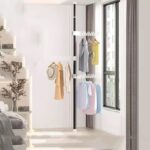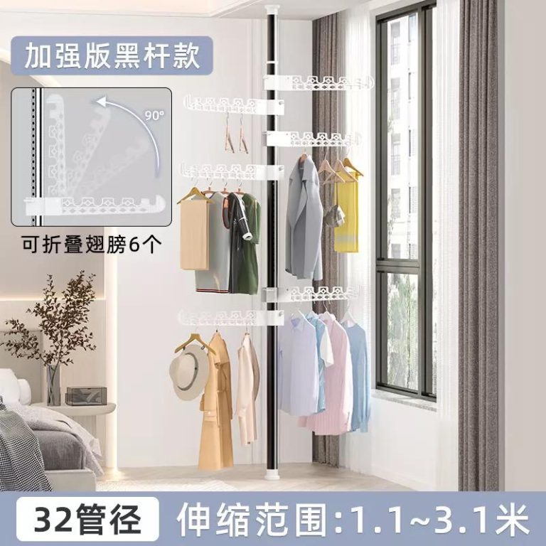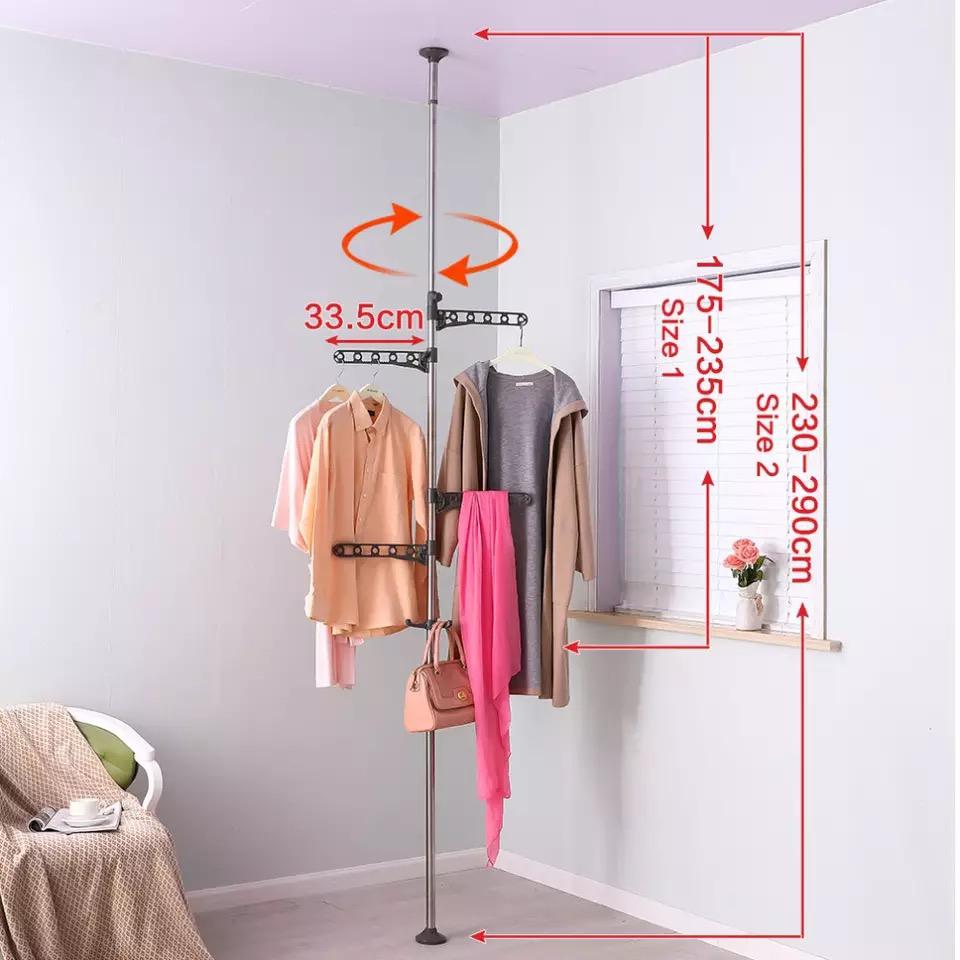The convenient and room-saving telescopic coat rack is perfect for hanging clothes since it can simply extended from the floor to the ceiling.